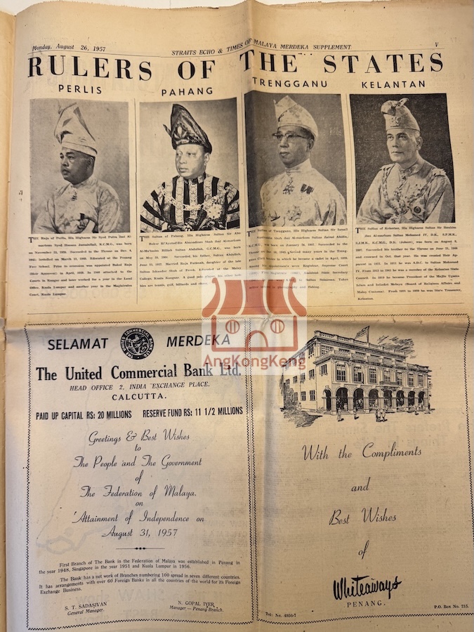 1957年独立日特刊 Straits Echo & Times of Malaya Merdeka Supplement 1957